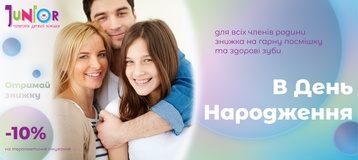 Лечение зубов для всей семьи со скидкой -10% в День Рождения.