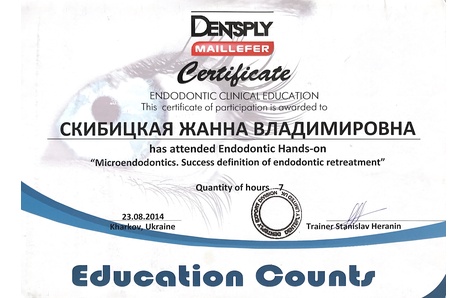 “Mikroendodotics. Success definition of endodontic retreatment”, Dentsply, Kharkov
