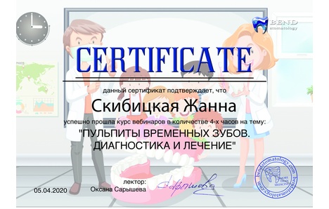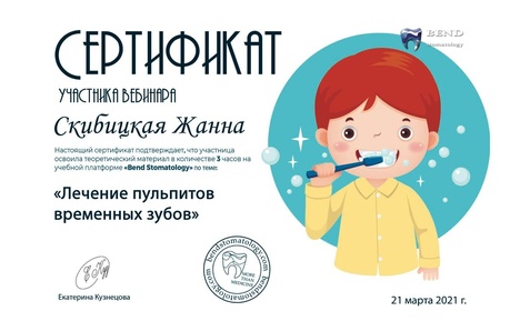 "Лечение пульпитов временных зубов", BEND stomatology, Кузнецова
