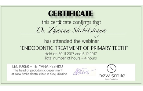 “Endodontic treatment of primary teeth”, New Smile education, Kyiv
