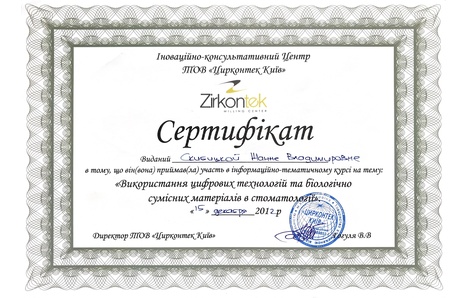 "Использование цифровых технологий и биологически совместимых материалов в стоматологии", Zirkontek center, Киев