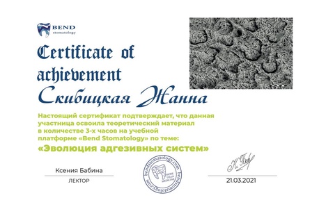"Эволюция адгезивных систем" ,BEND stomatology, Бабина