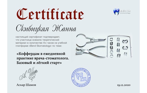 “Коффердам в ежедневной практике врача-стоматолога. Базовый и легкий старт”, BEND stomatology, Шамов