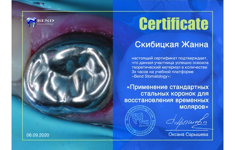 "Применение стандартных стальных коронок для восстановления временных моляров", BEND stomatology, Старышева